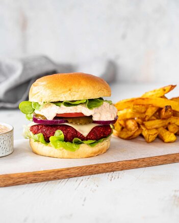 Tento vege cheeseburger s čočkou a červenou řepou je snem každého vegetariána!
