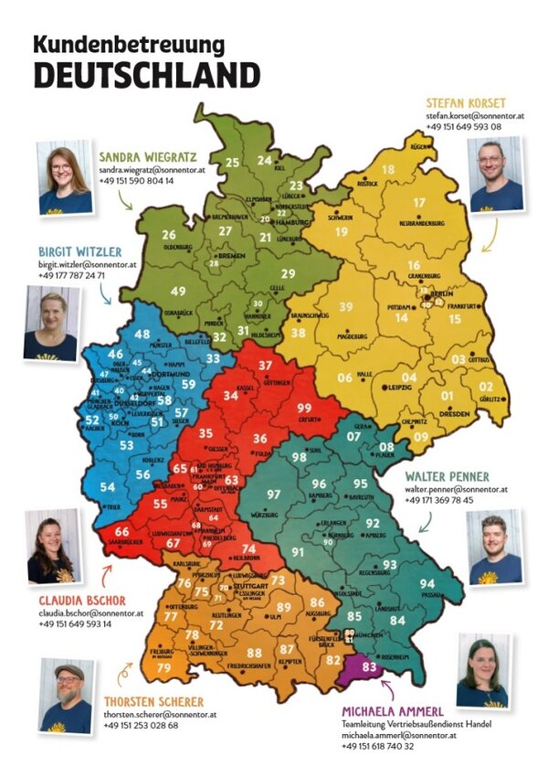 Dann stehen dir unsere Innen- und Außendienstmitarbeiter:innen in Deutschland und Österreich gerne zur Verfügung.