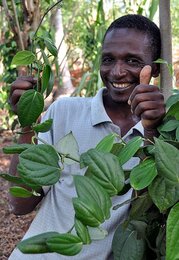 Cleopa was a successful hotel manager before deciding to join the organic spice business. He has always been interested in nutrition and agriculture. Furthermore, he has always been motivated to give back to the people. He does this by making sure there is available work which gives the people of his home region a positive outlook. Together with his wife Agnes, he founded a plant nursery in Muheza, in the middle of the breathtaking scenery of the Usambara Mountains. Growing spice plants is only one aspect of his work. Cleopa and Agnes also look after over 600 farming families – from the cultivation of their produce to the transport.