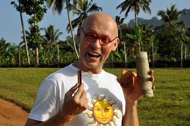 The farming families live in the middle of the jungle. Many have only about 2 acres of land to feed themselves. They grow mangoes, bananas, jackfruit and coconuts - and spices. Cars are not very useful here. Transport is by motorcycle or people must go on foot for hours and hours. The farming families receive support from Cleopa and his field officers. They also advise on the cultivation and harvest of spices. For example, cutting the cinnamon bark which requires a lot of skill