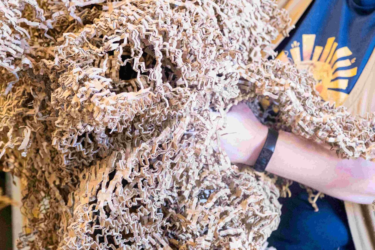 According to the principle "as large as necessary, as small as possible", we match the shipping packages to the products ordered as best as possible - this way we can avoid unnecessary waste and transport volume. We use recycled cardboard as filling material - for this we shred packaging that we accumulate in-house. We also use paper to protect sensitive items such as glass or ceramics.